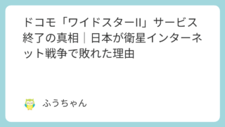 スマホ・電話 ドコモ「ワイドスターII」サービス終了の真相|日本が衛星インターネット戦争で敗れた理由 2028年3月31日をもって、NTTドコモの衛星電話サービス「ワイドスターII」が完全に終了します。約20年にわたって日本の衛星通信を支えてきたこのサービスですが、なぜ世界を席巻するSpaceXの「Starlink」のような成功を収めること... スマホ・電話