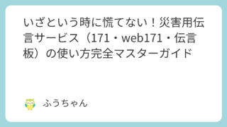 スマホ・電話 いざという時に慌てない!災害用伝言サービス(171・web171・伝言板)の使い方完全マスターガイド 大地震や台風などの災害時、真っ先に心配になるのは家族の安否です。しかし、災害時は通常の電話回線がパンクして繋がりにくくなるのが現実。そんな時に威力を発揮するのが「災害用伝言サービス」です。この記事では、NTTの災害用伝言ダイヤル171、we... スマホ・電話