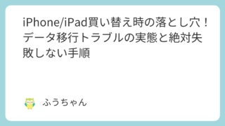 スマホ・電話 iPhone/iPad買い替え時の落とし穴!データ移行トラブルの実態と絶対失敗しない手順 iPhone/iPadの買い替えや売却時に、多くのユーザーがデータ移行でトラブルを経験していることをご存知でしょうか?「写真が全部消えた」「アプリのデータが引き継がれなかった」といった深刻な事態が、SNSやフォーラムで数多く報告されています... スマホ・電話