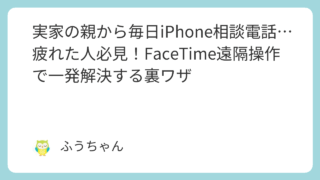 スマホ・電話 実家の親から毎日iPhone相談電話…疲れた人必見!FaceTime遠隔操作で一発解決する裏ワザ 実家の親から毎日かかってくるiPhoneの相談電話にうんざりしていませんか?「設定の場所がわからない」「アプリが消えた」「文字が小さくて見えない」など、同じような質問を何度も電話で説明するのは本当に疲れますよね。しかし、iPhoneのFac... スマホ・電話