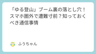 スマホ・電話 「ゆる登山」ブーム裏の落とし穴!スマホ圏外で遭難寸前?知っておくべき通信事情 近年人気を集める「ゆる登山」。手軽に楽しめる山登りとして多くの人が挑戦していますが、実は多くの登山者が見落としている深刻な問題があります。それはスマホの圏外リスクです。「低い山だから大丈夫」「観光地だから電波は通じるはず」そんな油断が、時と... スマホ・電話